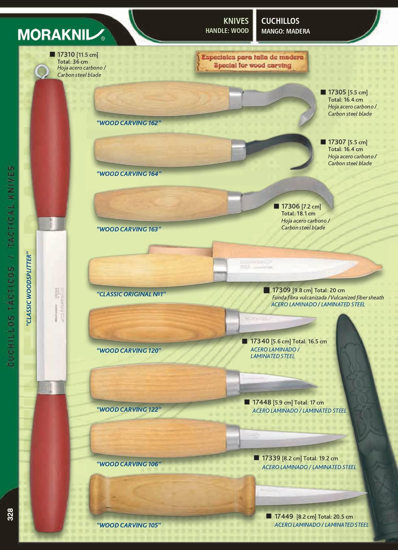 WOOD CARVING 106. Sheet: 7.9 cm. Total length 18.8 cm. Handle: wood. Blade of rolled steel. PVC sheath.