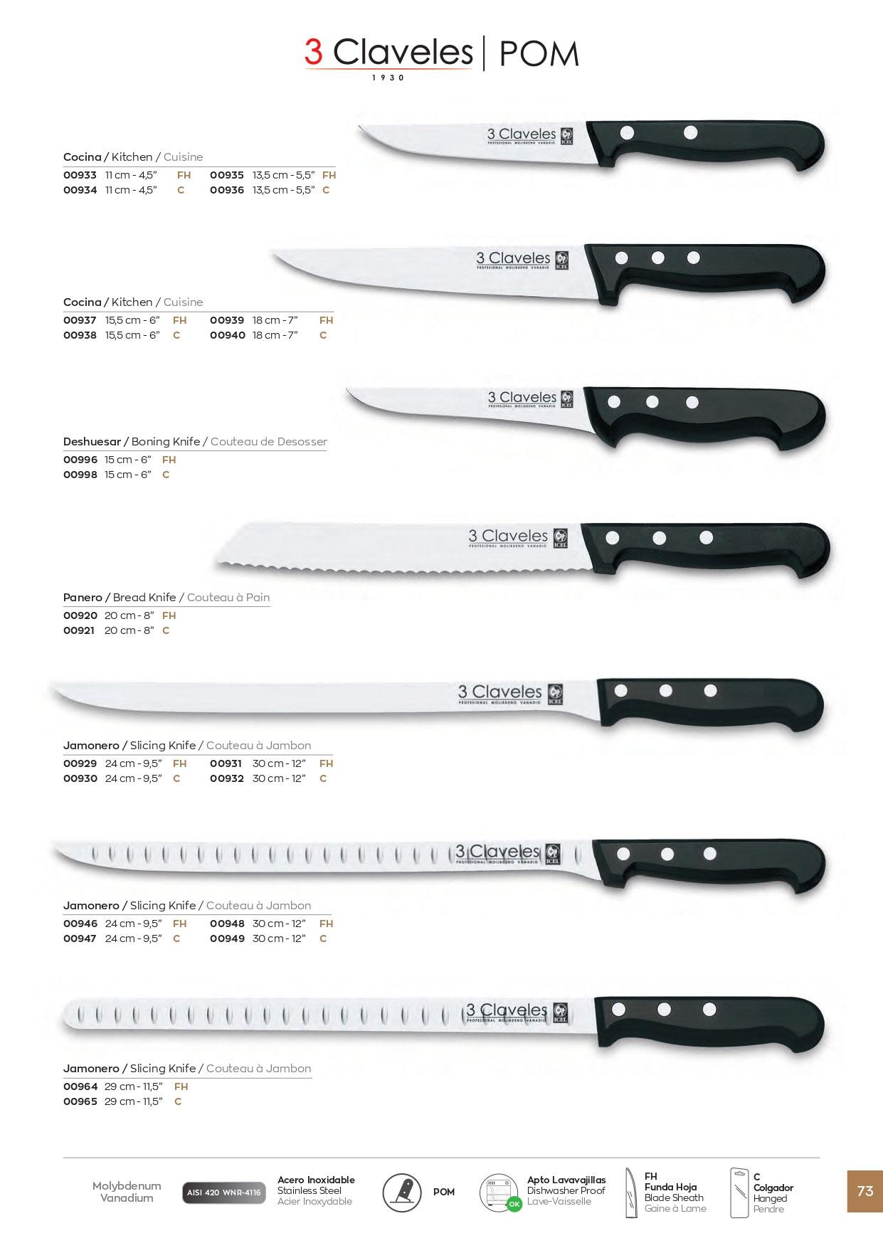 Couteaux de cuisine. Lame en acier inoxydable. POM poignée. Couteau à désosser, cuisine, du pain et du jambon.