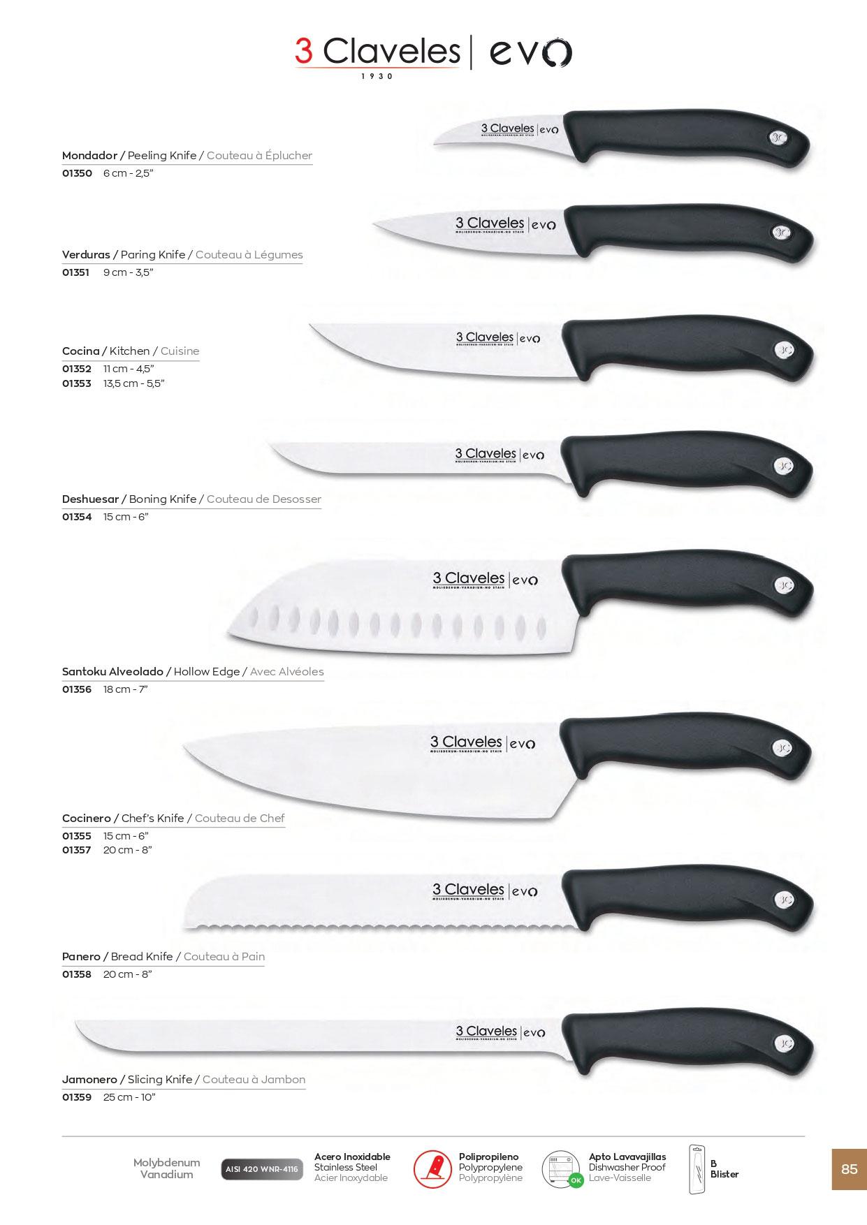 Couteau de cuisine 3 Claveles Evo avec lame de 13,5 cm et manche ...