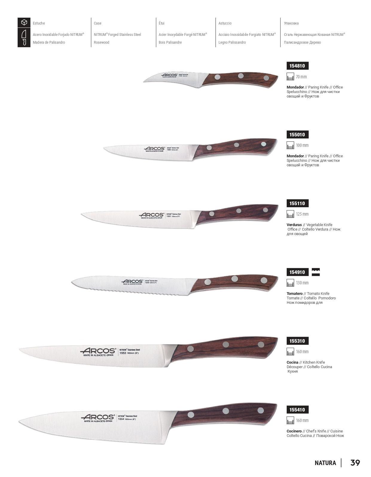 Couteaux de cuisine. Tôle d'acier NITRUM inoxiable. Mango palissandre.