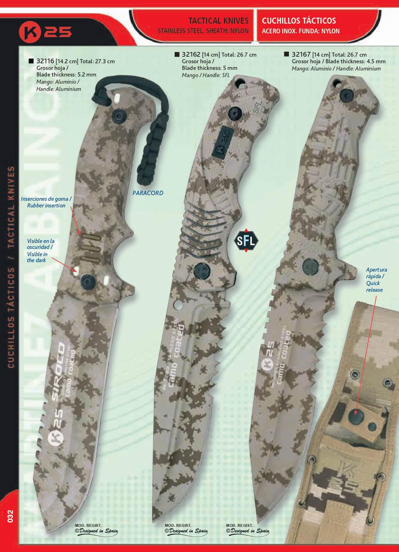 Couteau K25 avec manche camouflage SFL, étui en nylon et lame den...