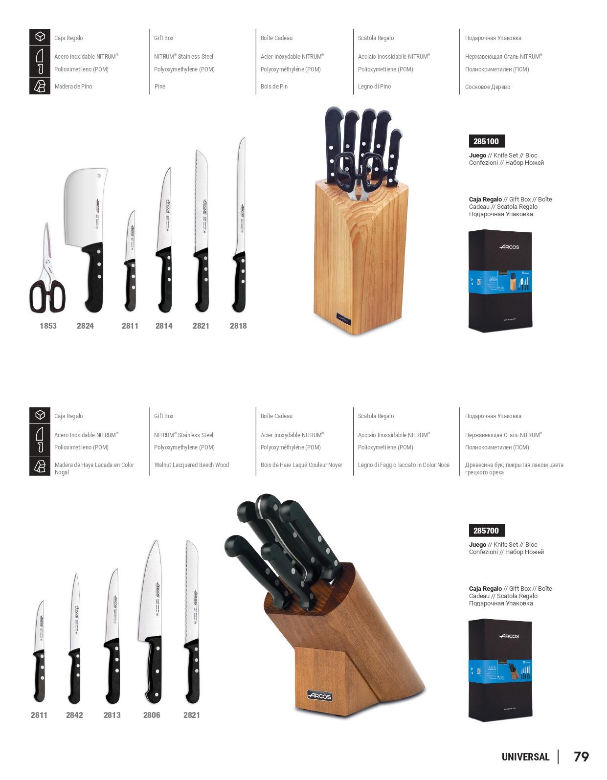 Couteaux de cuisine. Lame forgée en acier inoxydable NITRUM, POM manche, bloc de bois de hêtre. UNIVERSAL Series
