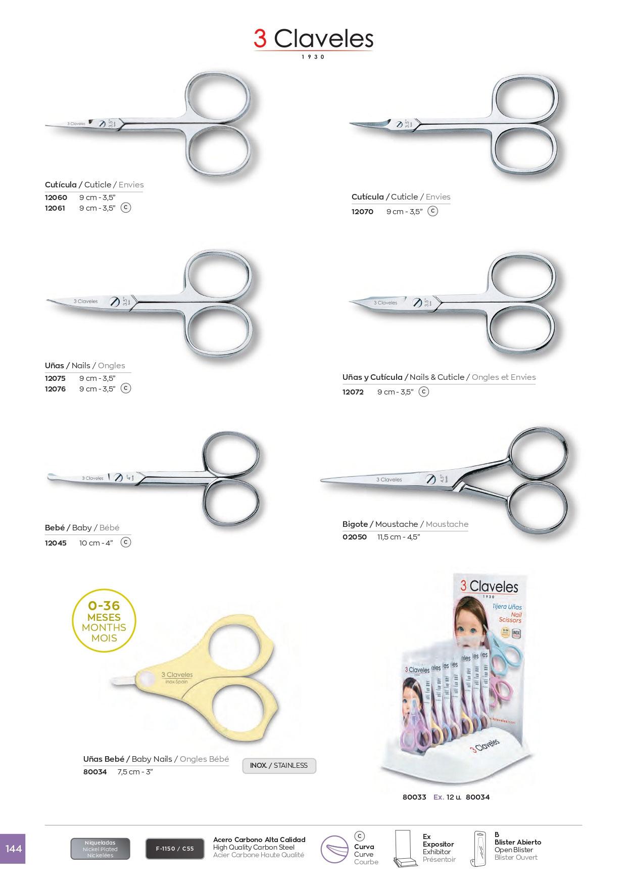 Forbici, nichel, acciaio al carbonio, forgiato a caldo. Naso, tasca, baffo, manicure, cuticole, unghie e pelle.