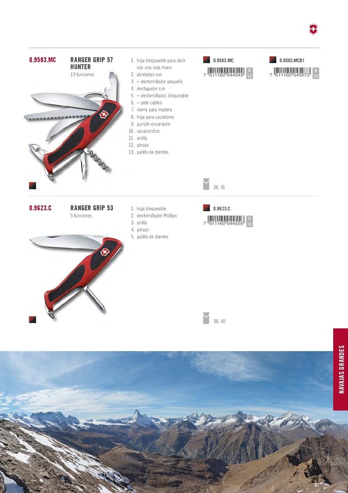 - 0.9583.MC RANGER GRIP 57 HUNTER: coltello multiuso con 13 funzioni. Blocco lama da aprire con una mano, apriscatole con piccolo cacciavite, dispositivo di rimozione con cacciavite bloccabile, spelafili, sega per legno, lama per cacciatori, punzonatore, cavatappi, anello, pinzette e stuzzicadenti.