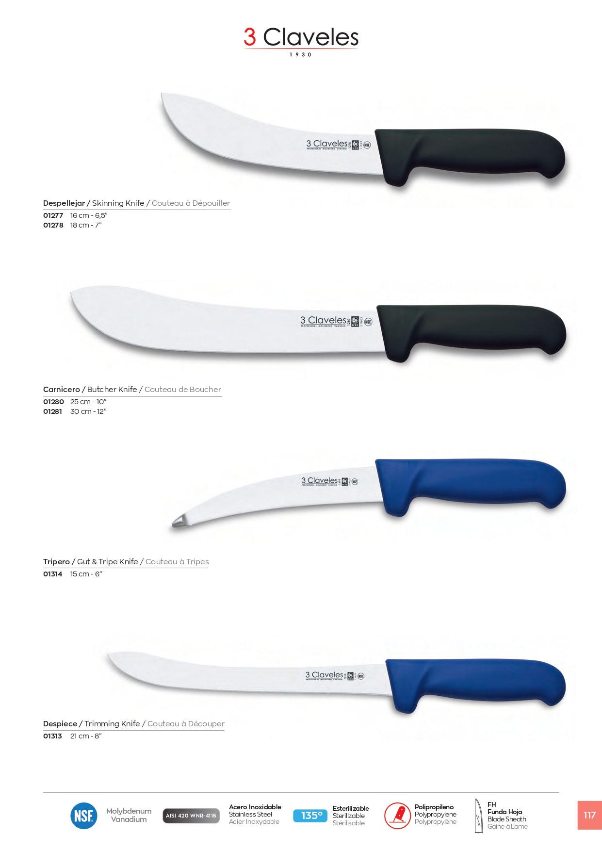 16cm Häutungsmesser mit schwarzem Polypropylengriff 3 Claveles