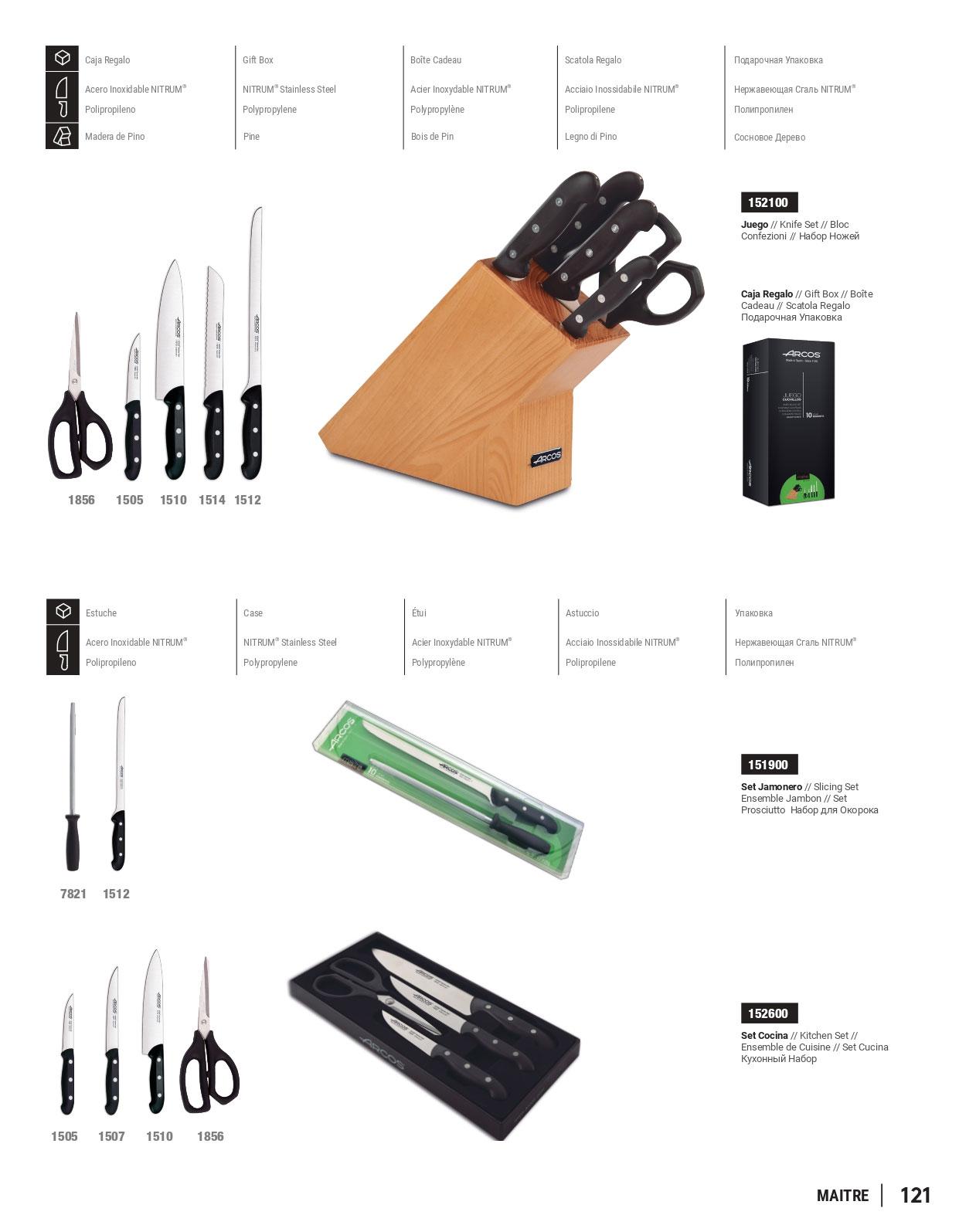 Set aus drei Arcos Maitre's Kochmessern und Scheren